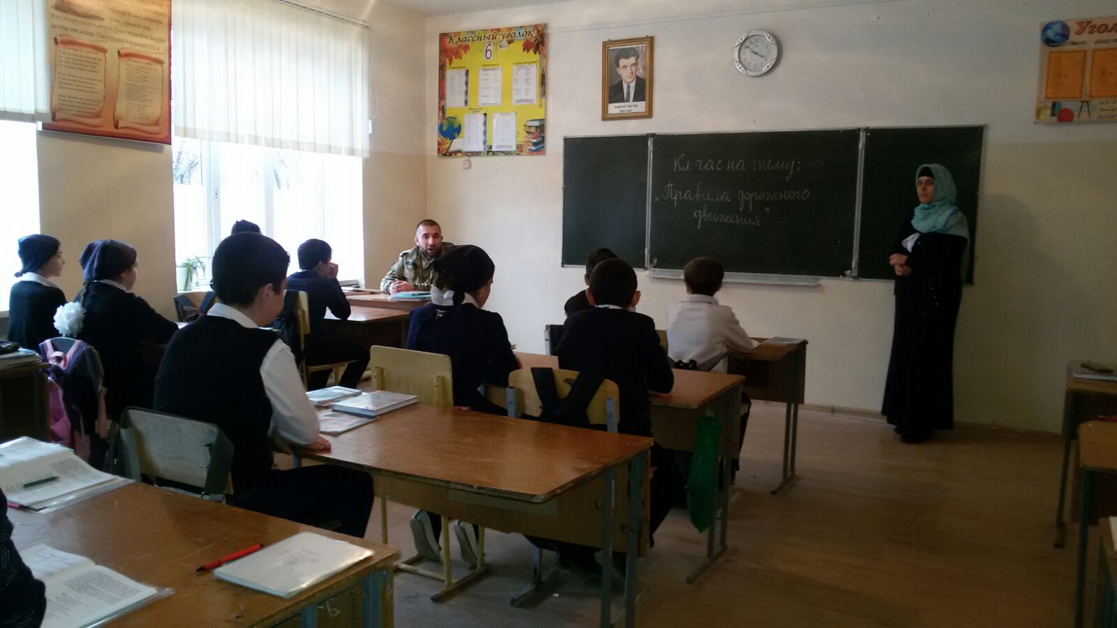 12.02.201611.02.2016г. в МБОУ «СОШ №9 г. Шали» в 6в классе прошел классный час на тему: «Знание основных правил пешехода». Классным руководителем Бибулатовой Т.Д. был приглашен инспектор ПДН, старший лейтенант полиции Межиев Аслан Авханович.