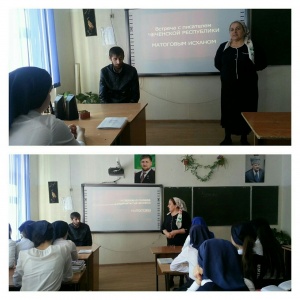 Встречу провела учитель чеченского языка и литературы Гереханова Луиза Вахитовна. Беседа была интересной и полезной для учащихся.