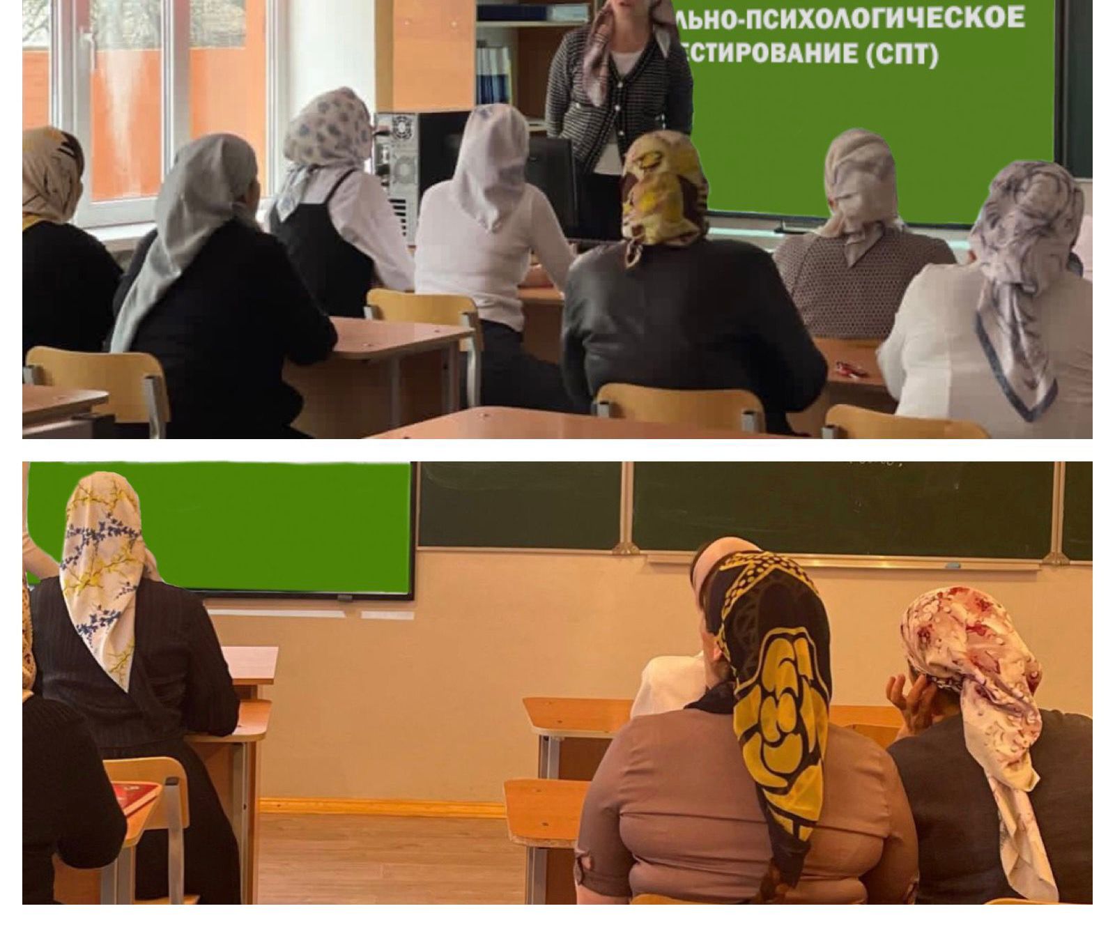 МБОУ «СОШ №9г. Шали» социальным-педагогом Абушовой Л. В-А. проведена разъяснительная беседа с родителями обучающихся старших классов. Основной целью данного мероприятия являлось формирование мотивационной готовности родителей к участию их детей в социально-психологическом тестировании.