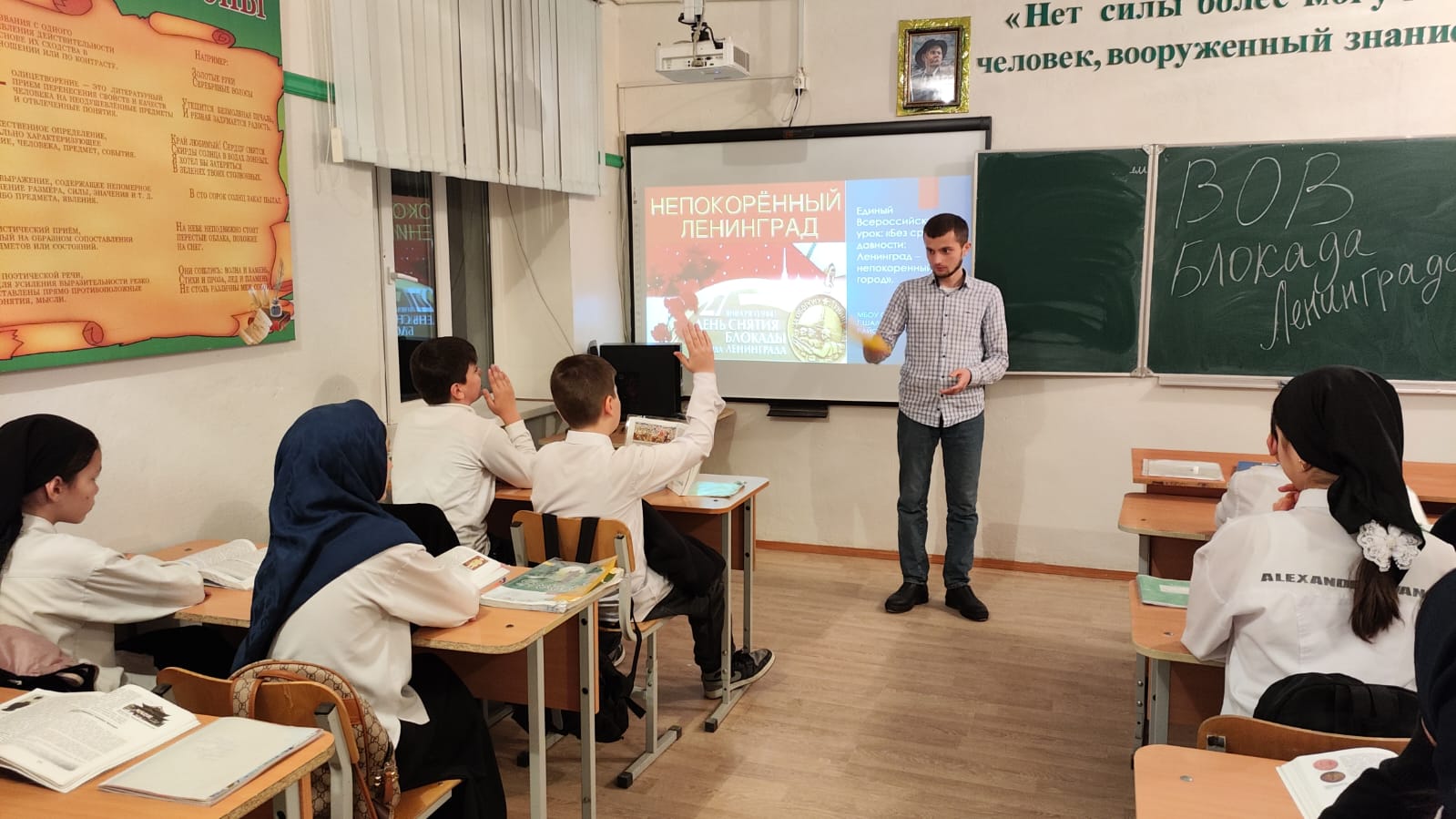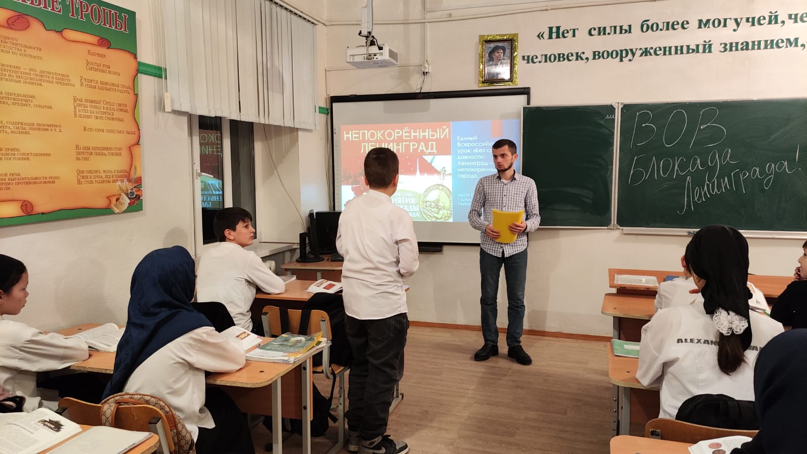 В МБОУ "СОШ №9 г. Шали был проведен единый Всероссийский урок "Без срока давности:Ленинград-непокоренный город". урок провел Дакаев А.И.