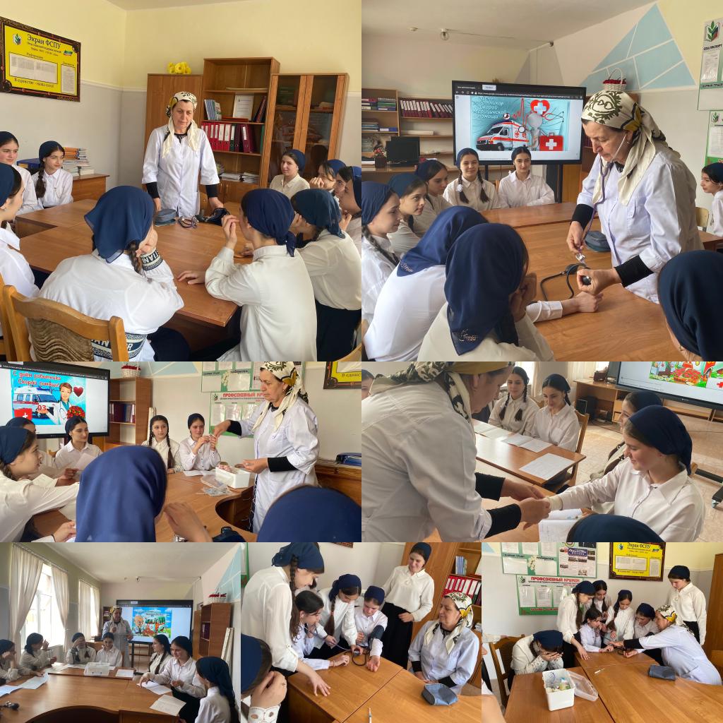 27.04.2023МБОУ «СОШ № 9 г. Шали» была проведена классная встреча участников команды «Движение первых», посвященная Дню работника скорой помощи. На встрече школьная медсестра Сербиева Х. А. рассказала учащимся как работают работники скорой скорой помощи, показала как оказать первую медицинскую помощь при экстренных ситуациях, как измерить давление тонометром и многое другое. День работника скорой помощи – профессиональный праздник медицинских работников, занятых в осуществлении срочной медицинской помощи на выезде. Отмечается ежегодно 28 апреля. #ДвижениеПервых #РДДМ #ВсеПрофессииВажны #ТРУДКРУТ