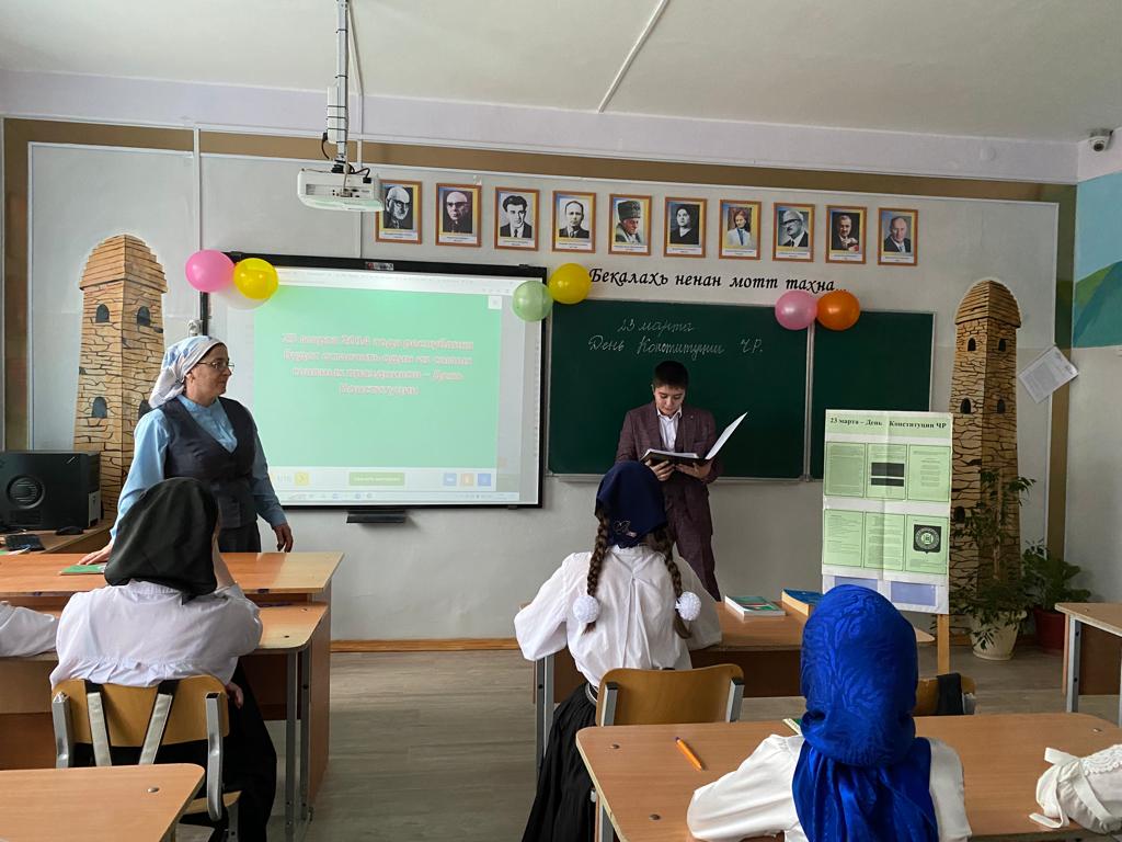 23.03.2023 года в МБОУ "СОШ № 9 г. Шали" были проведены классные часы, посвященные Дню Конституции ЧР.
