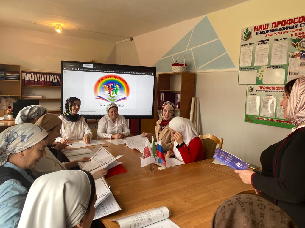 12.05.202312.05.2023 года в МБОУ «СОШ № 9 г. Шали» была проведена встреча председателя профсоюза с членами профсоюза, в рамках Федерального проекта «Социальная активность» Национального проекта «Образование». Председателем профсоюза в МБОУ «СОШ № 9 г. Шали» является Ахмадова Липа Бекхановна. За круглым столом и в дружеской атмосфере они обсуждали наиболее проблемные моменты. Цель данных встреч: узнать настроение в коллективе, увидеть наиболее проблемные моменты, выявить, в каком направлении организовать работу в первую очередь. Все предложения членов профсоюза записывайте, чтобы была возможность проанализировать и учесть эти предложения при встрече с работодателем. Чаще общайтесь с коллективом, это даст Вам возможность быть в курсе событий, проблем, связанных с трудовой деятельностью работников, и своевременно реагировать на них. Оказывая реальную помощь членам профсоюза, Вы практическими делами подтверждаете, что профсоюз для них – защита и опора. Работа председателя первичной профсоюзной организации крайне сложна. Она охватывает различные стороны нашей жизни. Чаще к председателю профкома люди идут со своими проблемами, обращаются за помощью. Именно Вы принимаете на себя неприятности своих коллег и пытаетесь помочь им. Являясь профсоюзным лидером в коллективе, знаете ситуацию на рабочих местах, решаете многие вопросы с руководителем, организуете членов профсоюза на совместную защиту своих трудовых прав, не забываете и о коллективном досуге.
