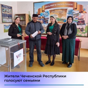 16.03.2024В Чеченской Республике избиратели приходят на участки семьями. Семья Чааровых в числе таких, они решили, что должны вместе принять участие в выборах президента.Дочери вместе с родителями пришли и отдали свой голос за кандидата, которого считают самым достойным.Семьями на избирательные участки в республике приходят чиновники, общественные деятели и рядовые граждане. По итогам первого дня голосования явка избирателей в Чеченской Республике составила более 400 тысяч избирателей.