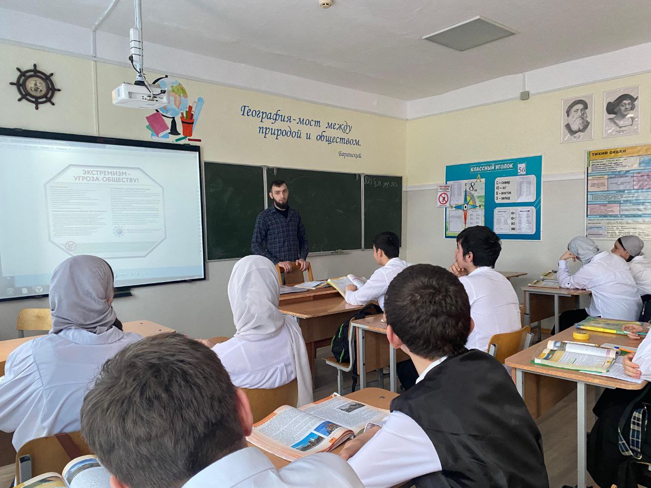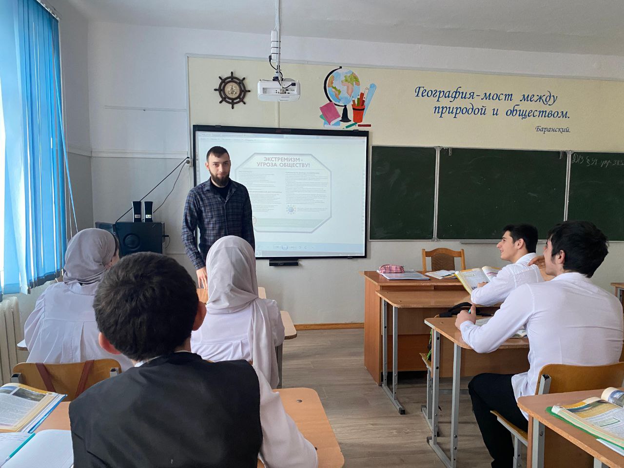 04.04.2024Отделом в Шалинском районе УФСБ России по Чеченской Республике совместно с МУ «Отдел образования Шалинского муниципального района Чеченской Республики» проведено профилактическое мероприятие в МБОУ "СОШ №9 г. Шали" на тему: «В связи с резко возросшим после теракта в комплексе «Крокус» количеством телефонных звонков и сообщений, поступающих гражданам России, включая несовершеннолетних, с подменных номеров с территории Украины, содержащих призывы к осуществлению террористических актов на территории РФ, а именно в торговых центрах, на объектах транспортной и социальной инфраструктуры, а также предложения подросткам за деньги совершать теракт».