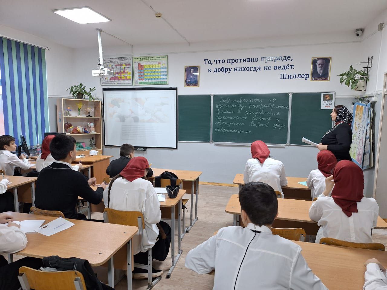 05.12.2024Отделом в Шалинском районе УФСБ России по Чеченской Республике совместно с МУ «Отдел образования Шалинского муниципального района Чеченской Республики» проведено профилактическое мероприятие в МБОУ "СОШ №9 г. Шали" на тему: «Ответственность за пропаганду, распространение, хранение и употребление наркотических средств и психотропных веществ среди несовершеннолетних».