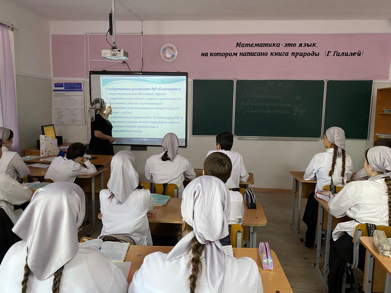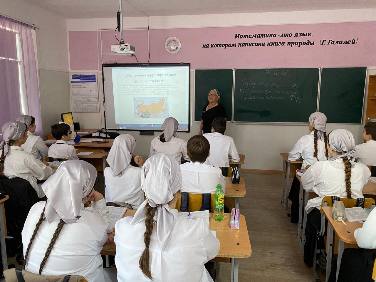Сегодня 14.10.25 сотрудником ФСБ отдела Шалинского района проведено профилактическое мероприятие в МБОУ «СОШ № 9 г. Шали» на тему: «Суверенитет и территориальная целостность РФ».