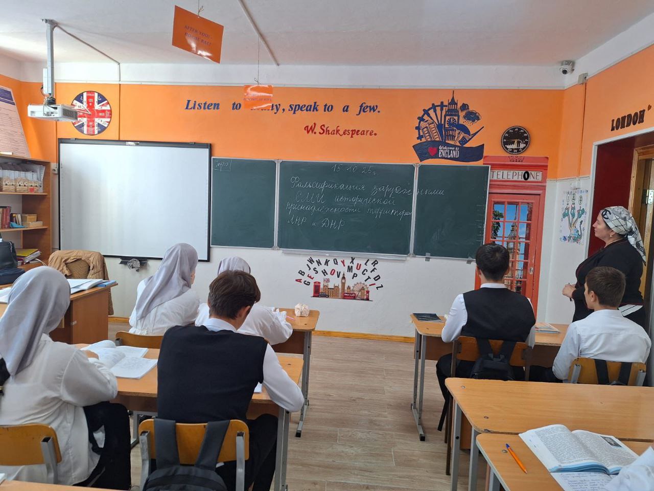 15.10.25 сотрудником ФСБ отдела Шалинского района проведено профилактическое мероприятие в МБОУ «СОШ № 9 г. Шали» на тему: «Фальсификация зарубежными СМИ исторической принадлежности территорий ЛНР и ДНР».