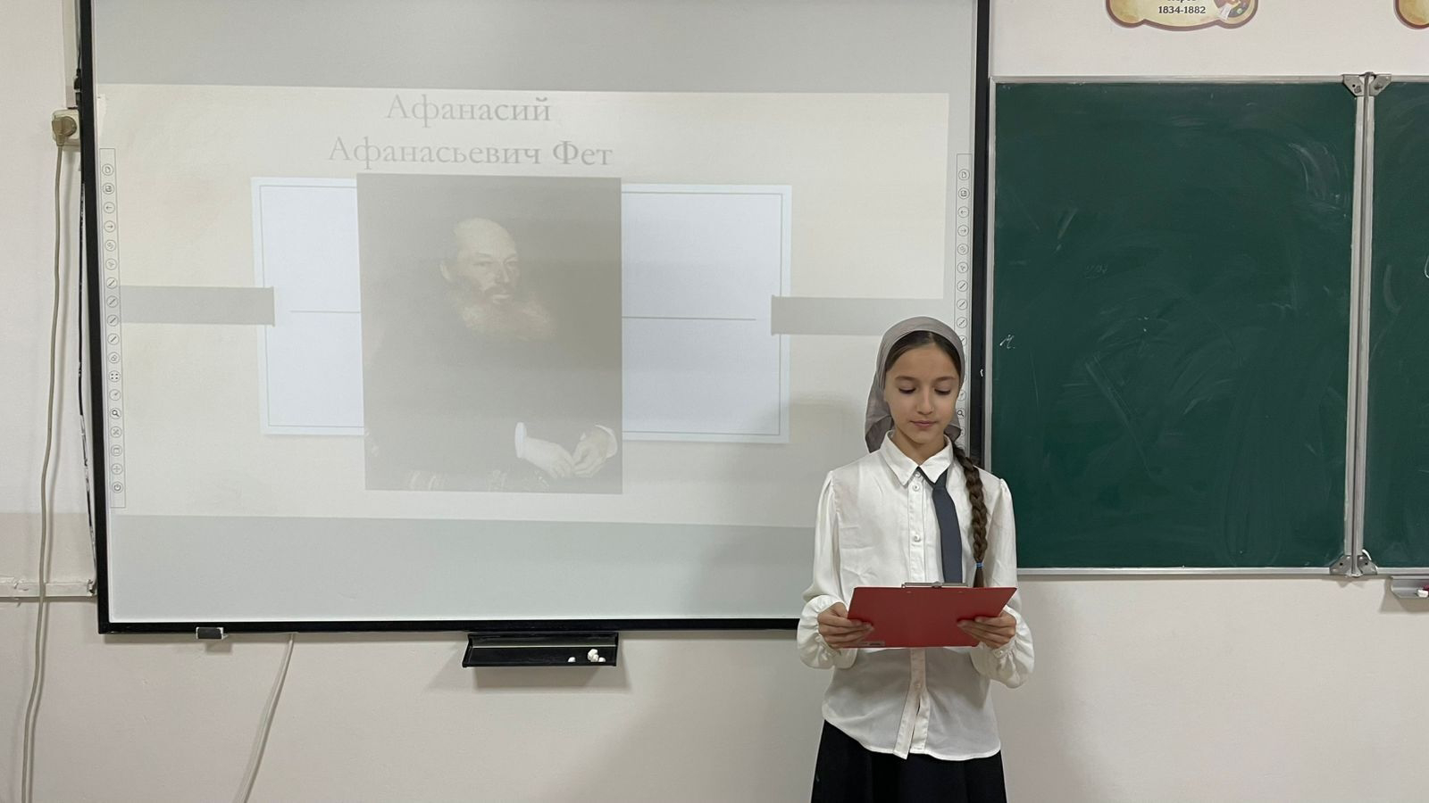 В 5 «В» классе прошла викторина, посвящённая 205-летию со дня рождения Афанасия Афанасьевича Фета.Ребята познакомились с интересными фактами из жизни поэта, вспомнили его стихотворения и проверили свои знания в увлекательной форме.