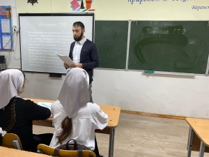 В МБОУ "СОШ №9 г. Шали"проведен открытый урок на тему "История развитие Всероссийский физкультурно-спортивный комплекс ГТО"